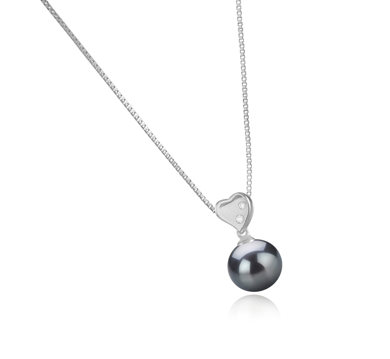 Anhänger mit schwarzen, 9-10mm großen Tihitianischen Perlen in AAA-Qualität , Taima - Heart